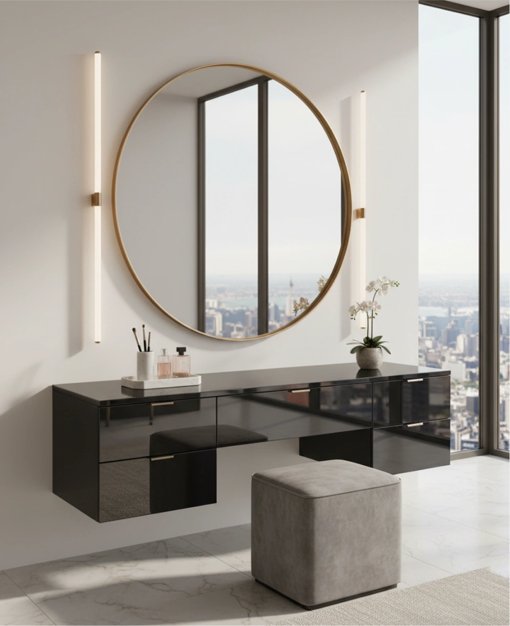 Steel dressing tables that balance visual lightness with solid construction. Designed to support mirrors, storage, and daily use without warping or misalignment, while offering finishes that blend effortlessly into modern bedroom interiors.